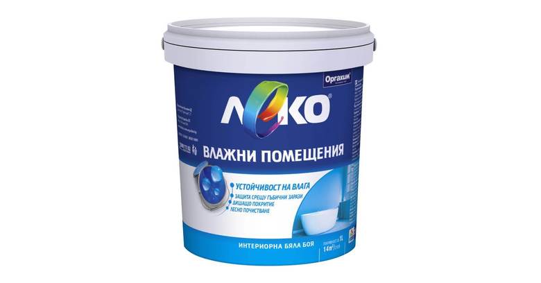 Боя Леко на ОРГАХИМ 1л, подходяща за вътрешно боядисване на стени и тавани във влажни помещения – бани, кухни, килери, перилни помещения и други. Боята e устойчива на бактериални и гъбични зарази. Осигурява „дишане“ на стените, висока белота на покритията и добра устойчивост към стареене и пожълтяване. Притежава отлична покривност и устойчивост на мокро триене и миене. Не пръска при нанасяне и не образува сбита утайка при съхнене.