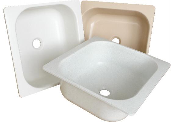 Умивалник за външни чешми, пластмасов, марка BG, производство на Санитапласт. Пластмасовият умивалник е с размери 400х400х160 мм, отвор за сифон ф 52 мм, без плот, с едно корито.