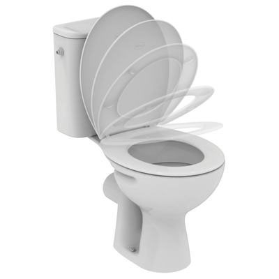 Моноблок Ulysse S в бял цвят с хоризонтално оттичане, казанче със странично водоподаване и седалка от дуропласт. Компактен размер с елегантен дизайн.