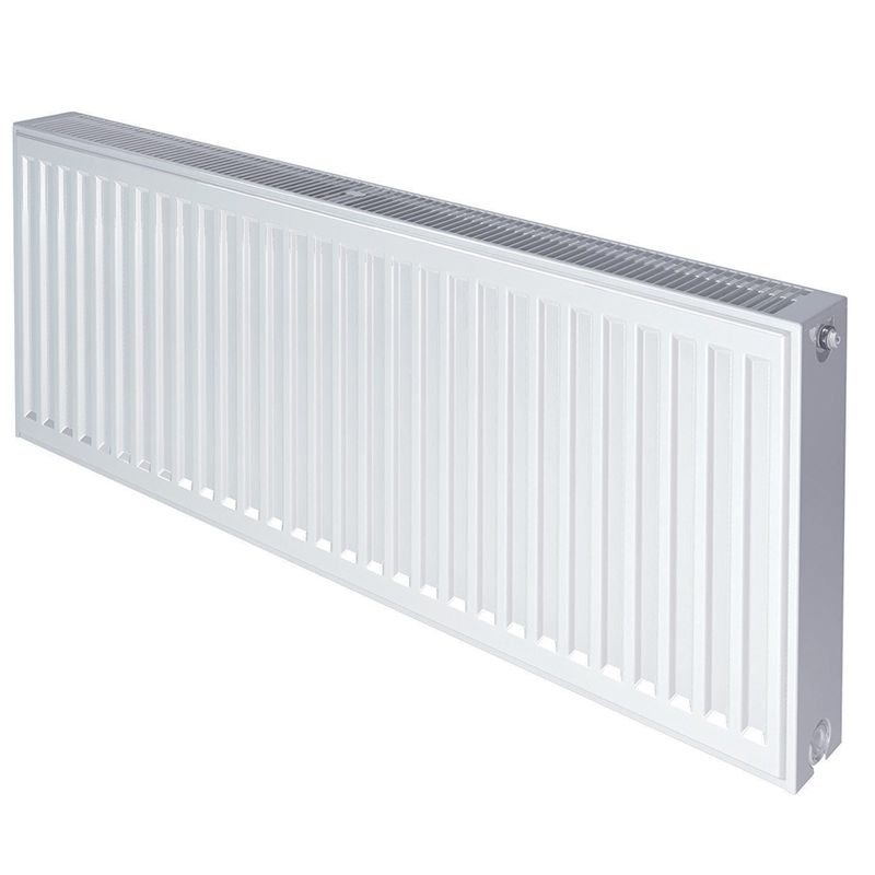 Панелни радиатори ТИП22. Стоманените радиатори с двойна пита или тип 22 са масово разпространени в отоплителните системи. Радиаторите предлагани от нас са с най-високо качество. Изработени от стоманена ламарина с дебелина 1,15мм с двойно покритие на боята. Те ще Ви служат дълги години. Предимството на панелните стоманени радиатори е, че те са доста евтини в сравнение с алуминиевите или чугунените радиатори. Вътрешните ламели са с цяла плътност или радиатора е с цял контур на топлообменника. За да пасне на всеки интериор са с боядисани в бяло.