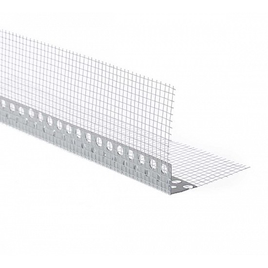Пластмасов профил с интегрирана алкалоустойчива стъклотекстилна мрежа за армиране на ъгли.
