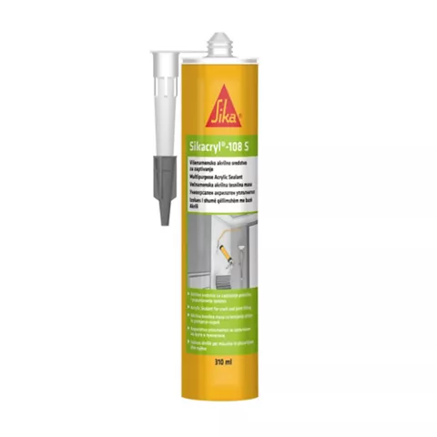 Sikacryl®-108 S е 1-компонентен уплътнител на база акрилатна дисперсия, усилен със силиконова емулсия. Има способност за поемане на движения до 15 % и висока устойчивост на дъжд.