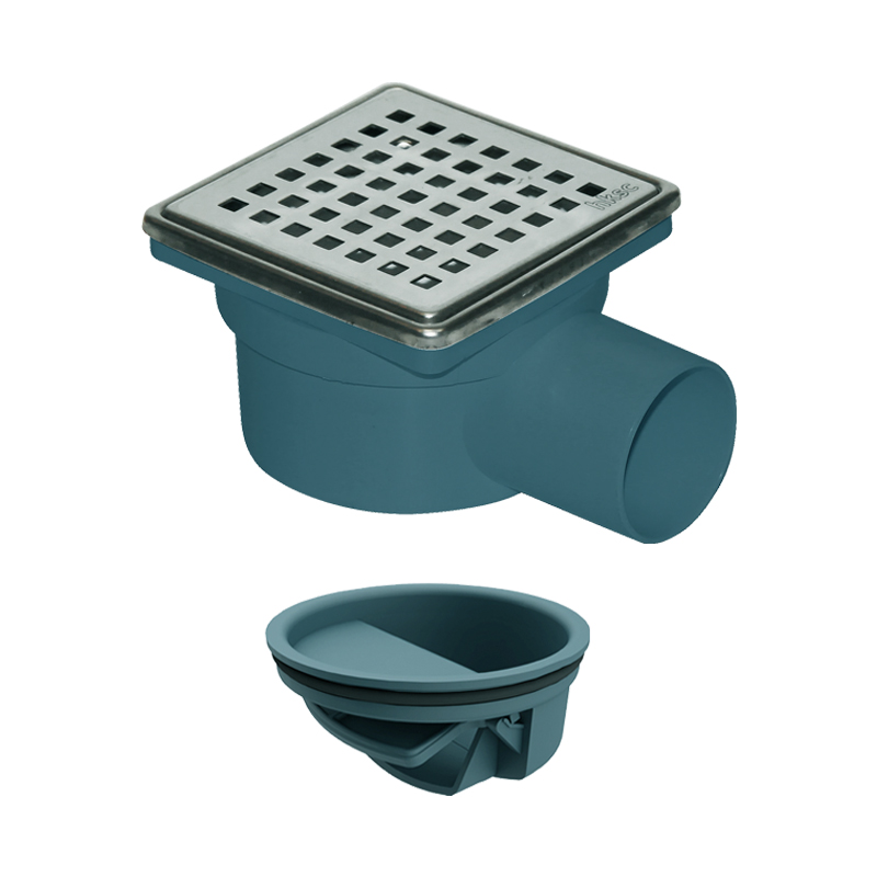 СИФОН ПОДОВ РОГОВ Ф50 С РЕШЕТКА 10 Х 10 СМ НЕРЪЖДАЕМА РАМКА